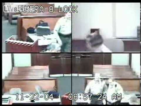 There's no swearing in Salt Lake City! This judge protects the moral authority of the courtroom by having an angry professor electrocuted for having a potty mouth. I'm assuming the court officers are cops-close enough for my purposes at any rate.